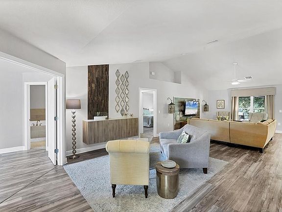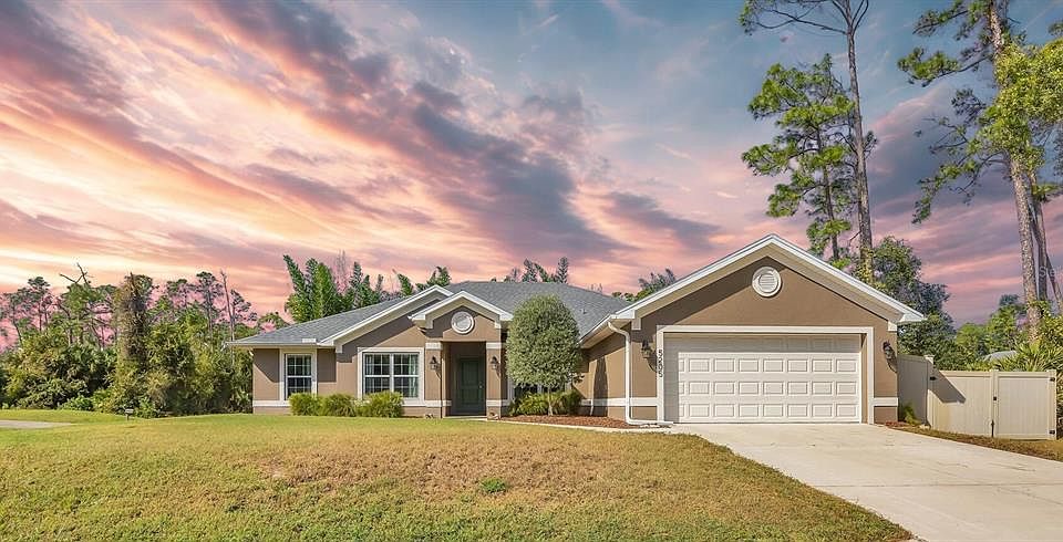 Prepare to be impressed by this impeccably maintained and truly stunning home, offering incredible space, privacy, and value. Situated on a half-acre lot, this gorgeous 4-bedroom residence also includes a den plus a separate bonus/sitting room, providing flexible areas for work, hobbies, or extended guests. With 2 full baths, a 2-car garage, and a fully fenced backyard, this property is designed for effortless everyday living inside and out. Step inside and you’ll be met with an enormous 29x15 great room, an ideal space for entertaining, relaxing, or creating multiple conversation areas. Elegant upgrades are found throughout, including laminate wood-plank flooring in the living areas and bedrooms, with tile in the kitchen, dining, and bathrooms. The spacious kitchen is designed for both style and efficiency, featuring granite countertops, a deep basin sink, tile backsplash, abundant cabinetry, and a pantry for extra storage. Whether preparing daily meals or hosting gatherings, this kitchen effortlessly accommodates your needs. The expansive primary suite, measuring approximately 17x14, comfortably fits large furnishings while still feeling open and inviting. The oversized 13x10 primary bathroom includes dual sinks, a separate soaking tub and walk-in shower, two walk-in closets, plus an additional linen closet providing exceptional storage and convenience. The thoughtful layout continues with three additional bedrooms, a full guest bathroom, and a large laundry room equipped with storage cabinets. Outdoor living is equally impressive. The northern part of the property is beautifully wooded, adding an extra layer of natural privacy and enhancing the peaceful backyard setting. Enjoy a fully fenced yard complete with two storage sheds and a cozy fire pit. A great space for hosting friends or simply taking time to unwind. Major updates add peace of mind, including a NEW roof in 2023, hot water heater in 2024, a whole-house reverse-osmosis system, and hurricane shutters. Not located in a flood zone - no flood insurance required. This home’s location is another standout feature. Ideally positioned just 30 minutes from award-winning Gulf beaches and close to shopping, dining, golf, medical facilities, and entertainment, everyday convenience is truly at your doorstep. Whether you're looking for a year-round residence or a seasonal Florida retreat, this property delivers exceptional value with its generous square footage, upgraded finishes, private outdoor space, wooded privacy, and well-planned layout. Thoughtful updates, abundant storage, and flexible bonus areas make it suitable for a wide range of lifestyles. Homes like this offering size, condition, privacy, and location are rare in today’s market. It’s truly priced to sell.