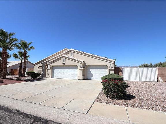 Make yourself at home in this spacious home in Silver Sands Estates! Large living room, open kitchen and dining room with breakfast bar and granite counter tops. Has slider door going out to covered patio. Split floor plan. Master bedroom has new carpet with walk in closet; Master bathroom has walk in shower, double sinks and linen cabinet. Laundry room inside of home with lots of cabinets and laundry sink. Carpet and tile throughout home with central vacuum system. Desert landscaping, fenced in yard. Has double gates with RV parking and room for your river toys and 3 car boat deep garage with AC. Owner is an Arizona Licensed Real Estate Agent