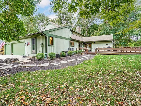 OPEN HOUSE SATURDAY 4/12 FROM 2-4! Welcome Home to Buckingham Village! Nestled on a picturesque acre lot with lush landscaping and towering trees, this stunning home offers the perfect blend of elegance, comfort, and modern convenience. As you arrive, the side-load heated 3-car garage and extra parking provide both practicality and curb appeal. Step inside the welcoming foyer, where a spacious den adorned with beautiful wainscoting awaits to your right—perfect for a home office or cozy retreat. The main bedroom suite is a true sanctuary, featuring a triple sliding door to the serene backyard and deck. Pamper yourself in the luxurious ensuite bath with a walk-in shower, double vanity, large walk-in closet, and a relaxing jetted tub. An additional main-floor bedroom with its own mini-split system and a nearby full bath adds versatility. The heart of the home is the expansive open living area, where vaulted ceilings, wood beams, and sun-filled double sliders create a warm and inviting atmosphere. Enjoy casual mornings in the breakfast area, which also opens to the deck, or gather in the spacious kitchen with Corian countertops, ample cabinetry, and a large center island—ideal for entertaining. A formal dining room offers extra space for special occasions. The main level also features a functional mudroom/foyer with a laundry space, separate half bath, pantry, and garage access. Upstairs, you’ll find three generously sized bedrooms and a full bath, providing plenty of room for family or guests. The finished lower level is designed for entertainment, featuring two recreation areas and a charming bar space. Did I mention that the home theater seating will stay with your new home? With fresh paint, flooring updates, and a wraparound deck enhancing outdoor living, this home is truly move-in ready. Check out the seller’s attached list of updates and schedule your showing today!