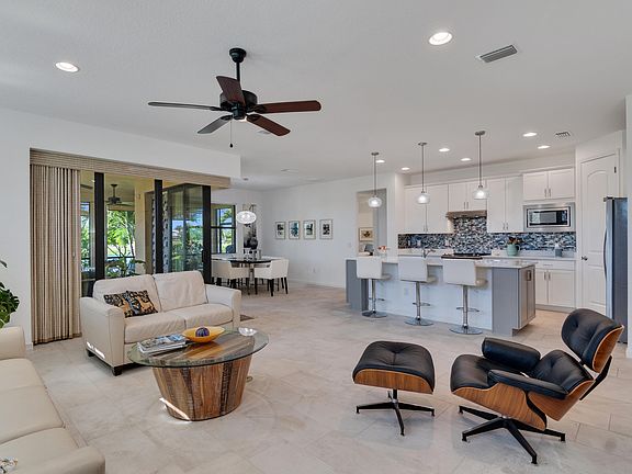 Peaceful lake viewLarge screened lanaiBig islandRoomy garageStylish window shadesQuartz countersOpen floor plan