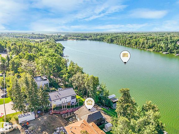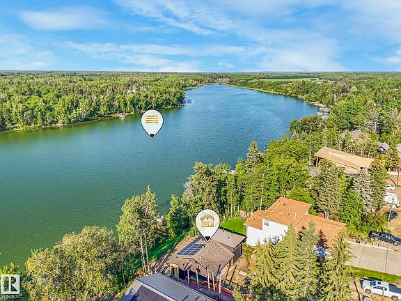 A stunning waterfront property located on the shores of Half Moon Lake. This 2 bedroom plus flex space home has been masterfully upgraded. In floor heating throughout, 2 gas fireplaces, upgraded insulation, vaulted open beam main living area, Rehau tilt and turn windows, Schuco sliding patio door and absolutely impeccable lake views. The master suite sits alone on the upper level and has plenty of room for furniture. It includes a luxurious ensuite with large walk in shower. Solar panels, Armour Side metal siding and Lindab gutters are gorgeous and practical additions to the exterior. The outdoors await with skating, hiking, snowmobiling and water sports. Plenty of room to park your vehicles and toys. This property is ready for someone to see it through completion.