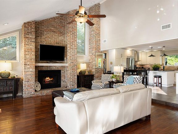 Stunning wraparound upper porchStainless steel appliancesStriking floor-to-ceiling brick fireplaceSoaring vaulted ceilingsExtra-large temperature-controlled garageFinished-out attic walk-in closetMature trees