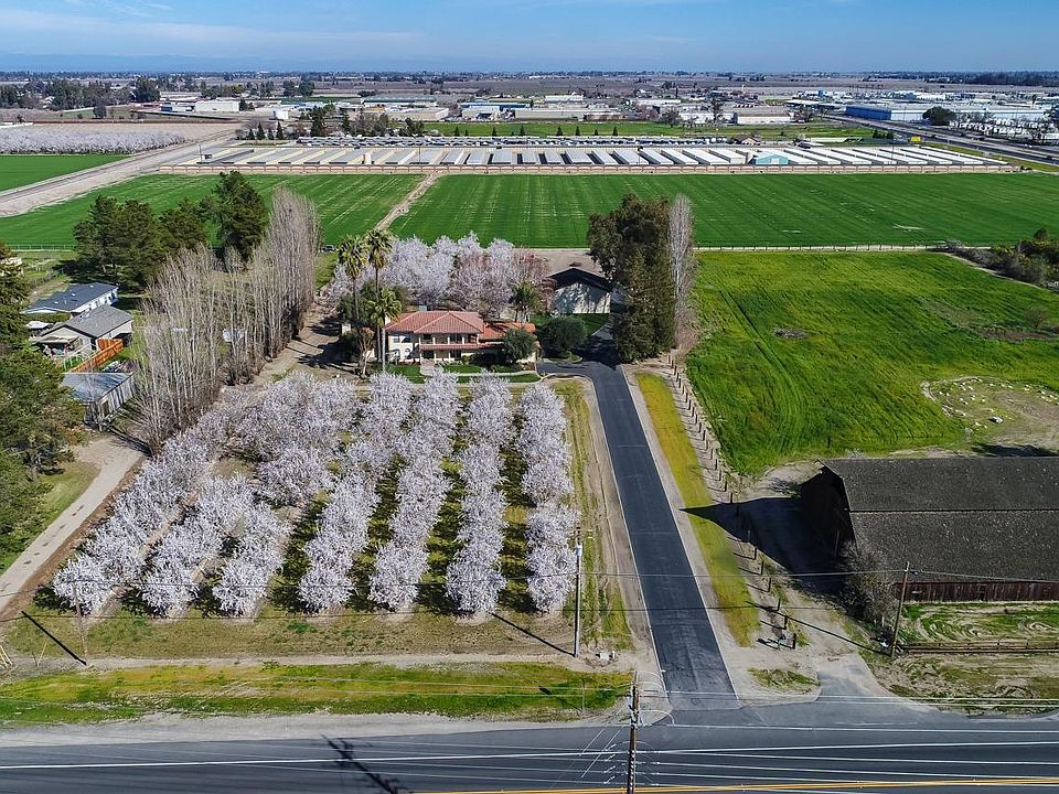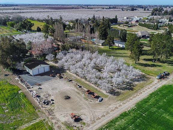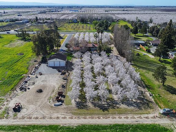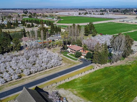 Hard to find ranchette in town! Beautiful setting on 3 acres, homes sits back off street in middle of planted almonds. 2 story home offers 3 bedrooms all upstairs, master has balcony to enjoy sunsets! Both upstairs baths have radiant heated flooring and concrete counters.3.5 baths total, 1 full and 1/2 downstairs. Kitchen has concrete counters, 2 built in drawer dishwashers, gas cooktop range, stainless oven ,microwave and warming drawer! Living room enjoys orchard views, family room with outdoor patio access. Formal dining room, inside laundry with cabinets and storage. Computer station! Out door cabana has sink, oven, barbecue and gas fireplace ,amazing setting. Barn/shop is 40x42