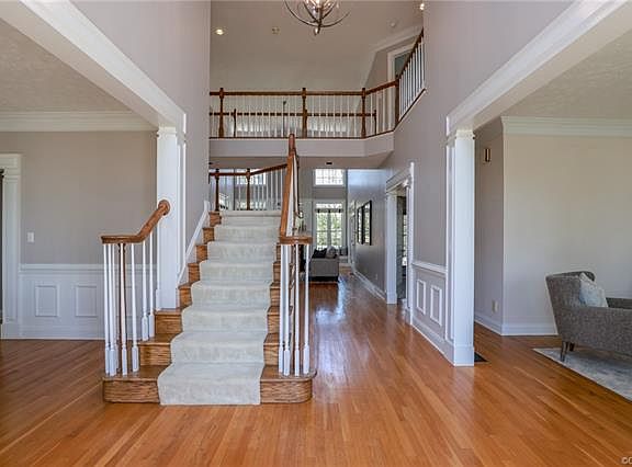 Are you looking for a big home with a basement and seasonal views of the Swift Creek Reservoir? Do you prefer a small yard, located in a community with ample outdoor amenities? If you answered "Yes" to both, then I have the house for you. This gorgeous custom-built beauty features an impressive eat-in kitchen with Himalayan Quartzite countertops, BRAND NEW stainless-steel appliances, and a huge center island with a 5-burner gas cooktop. First floor office, a three-car garage, and screened porch. The primary bedroom features a double-tray ceiling, bay window, and spa bath. The 2nd bedroom has a private bath, while the 3rd & 4th bedrooms share a bath. The daylight basement offers another full bath and a gas fireplace surrounded by built-ins. Roof, windows, and both hot water heaters replaced in 2019. Located in award-winning Woodlake. Large floored attic with high ceilings. Tomahawk Creek Middle & Cosby High!