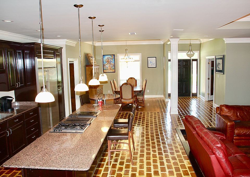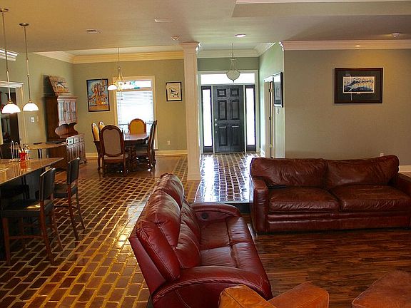 Custom brick, open floor plan, brick floors, huge back patio. Large double garage with separate detatched brick garage next to 45 x22x18 double boat shed. Home also has large study inside with a smaller air conditioned office with access from the garage.
