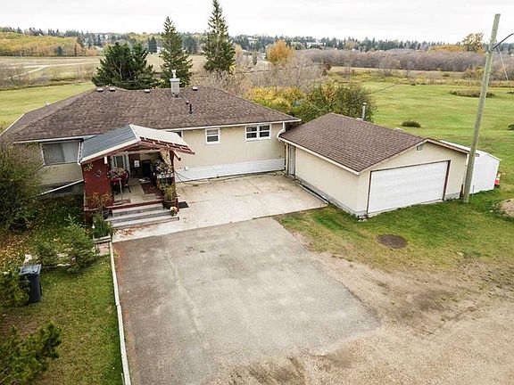 Welcome to this unique 1300 sq ft bungalow with a detached garage, nestled on 3.1 acres bordering the scenic Battle River, right in the heart of Ponoka! The main floor offers 4 bedrooms, 1 full bathroom, an oak kitchen, and a spacious dining/living room that showcases stunning views of the river. Beautiful hardwood floors accent the living area, with some newer windows adding to the home’s charm and comfort. The basement features a large bedroom and a generous family/rec room, providing plenty of space to add one or two additional bedrooms if desired. Several basement walls have been newly drywalled and are at the mudding stage—ready for your finishing touches. There’s also an abundance of storage throughout the home. The property is connected to town water and sewer services, while also offering its own well—perfect for watering gardens and landscaping. Over the years, the owner has made significant improvements to the land, including clearing low brush and bringing in approximately 160 tandem loads of fill, creating a beautiful, elevated space for outdoor enjoyment. Nature lovers will appreciate the abundant wildlife, including deer, waterfowl, pelicans, herons, and even a resident eagle that frequently graces the property and river skies. This special property is full of potential and truly must be seen to be appreciated!