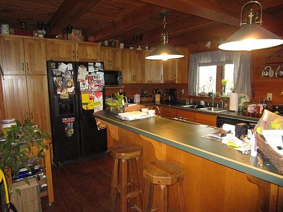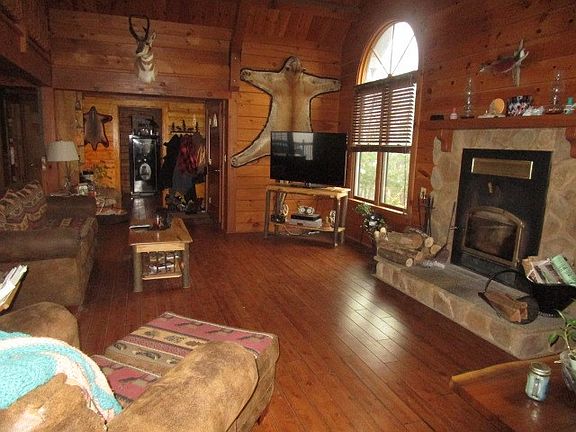 Enjoy all of the beautiful views from this log home with 12+ acres. The property backs up to Kiedaisch Point where there are multiple ATV, horse and walking/running trails, hunting and woods available at your disposal. This home features 3 bedrooms, 2 full baths, an additional sitting area, wood burning fireplace, deck, etc.... also included is a 5 stall, 35'x60' metal barn with tack room. Peaceful and inviting!!!