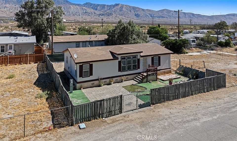 Best value buy in the neighborhood! Discover this well-kept 3-bedroom, 2-bath home in the peaceful community of Cabazon. The functional split floorplan offers added privacy with the primary bedroom on its own wing. Enjoy laminate flooring throughout most of the home, a decorative fireplace, window blinds, ceiling fans in every bedroom and a soaking tub in the primary bathroom. The spacious kitchen features a breakfast bar, perfect for casual meals or entertaining. Step outside to a large backyard with mountain views and a storage shed for extra space. This home is ideal for those seeking affordable living without sacrificing access to nearby cities—just minutes from Banning, Beaumont, and the rest of the Inland Empire. Conveniently located near the 10 Freeway, Cabazon Outlets, Morongo Casino, and only a short drive to Palm Springs and other desert destinations. A smart opportunity for first-time buyers, investors, or anyone looking for value and convenience!