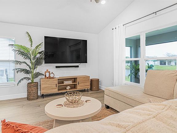 This home is available February 1st, 2026 and monthly rent includes internet and security cameras. Discover resort-style living in this beautiful, well-maintained villa.This single-level home, built in 2023 ,offers a blend of modern design, energy efficiency, and low-maintenance living. Perfect for snowbirds, families, or anyone seeking the South Florida lifestyle.Step inside to an open-concept living space highlighted by volume ceilings and a bright, functional split-bedroom floor plan. The kitchen features a large pantry and oversized island. The owners suite features a large walk in closet, tub with separate shower and dual sinks. Enjoy a lake view with your morning coffee from your screened porch.