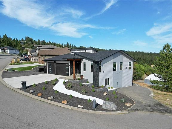 Built using only the finest materials, this daylight rancher boasts breathtaking mountain and valley views! With 4 spacious bedrooms, each featuring a walk-in closet, and 3 of them offering their own en-suite bathrooms, this residence redefines luxury and convenience. Step out onto the cedar soffit covered back deck with permanent decking material, where you can savor the beauty of the surroundings. Inside, a stunning stone fireplace and stone accented walls create a warm and inviting ambiance. The kitchen island, also adorned with stone, serves as a focal point in this elegant space. The kitchen with plenty of counter-top space and a large walk-in pantry features black and white veined granite countertops, complementing the modern use of tile, lighting, cabinetry, and trim. Luxurious vinyl plank flooring adds sophistication to each room and the basement features heated floors, making this property a truly inviting retreat! Attached 3 car garage and extra parking beside the garage for an RV!