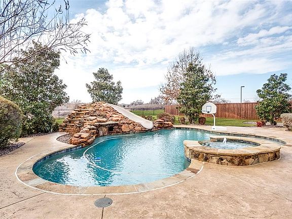 Custom home backing to City owned land! GCISD! NO HOA! Just over a half acre lot. Features include: granite countertops throughout, built in wine cooler, vaulted ceilings, gas fireplaces, and hand scraped hardwood flooring. Gourmet kitchen featuring a Butler's Pantry, SS appliances, walk in pantry, commercial grade gas cooktop, built in fridge, double ovens, and more! Downstairs floor plan includes a Study, guest bedroom, guest bathroom, and Master retreat with custom closet & jetted tub. Upstairs floor plan features 3 bedrooms, 2 full bathrooms, Media Room, and Game Room with wet bar. Private backyard oasis with covered patio, built in grill, outdoor kitchen, heated pool, attached spa, water feature & slide!