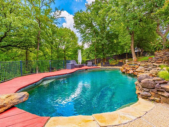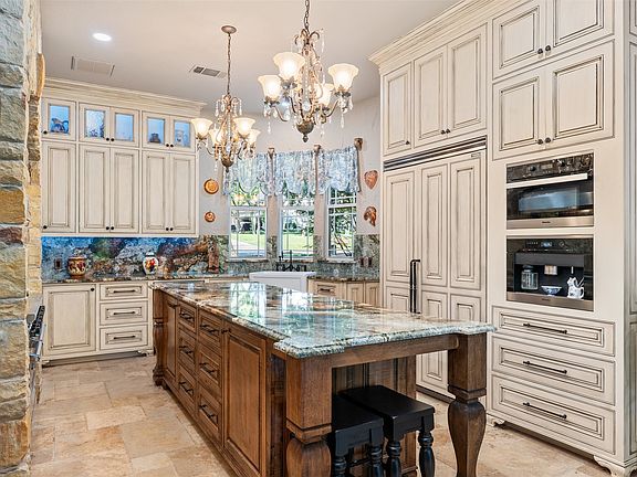 This refined Flower Mound residence sits on a sprawling, lush lot and is filled with refined details and functional spaces. Inside, you’ll find extraordinary architecture plus three fireplaces, and soaring ceilings throughout. No details were left behind in the recently remodeled state-of-the-art kitchen boasting luxurious granite countertops and backsplash, stone accents, built-in fridge, wine cooler, and coffee espresso machine. The downstairs primary retreat offers a fireplace, wall of windows with lush views, patio access, a hidden cedar closet safe room, and a spa-like bath with dual vanities and a separate tub. This incredible floorplan boasts a second downstairs bedroom that can be used as a flex space or home gym, an office, formal dining, and den plus spacious family room. Upstairs offers two additional bedrooms with en-suite baths and a massive game room. Step outside and immerse yourself in the private backyard oasis, where there’s plenty of room to play, relax, and entertain. This warm welcoming and light-filled residence is a must-see! Thoughtful additions include a large laundry room with sink and laundry chute, plus a brand NEW HVAC system. Outdoor enthusiasts will appreciate the home’s prime location with easy access to Lake Grapevine and the scenic Twin Coves hiking trails, perfect for fishing, kayaking, and exploring nature. Plus, you’re only minutes from all the shopping, dining, and entertainment Grapevine has to offer.