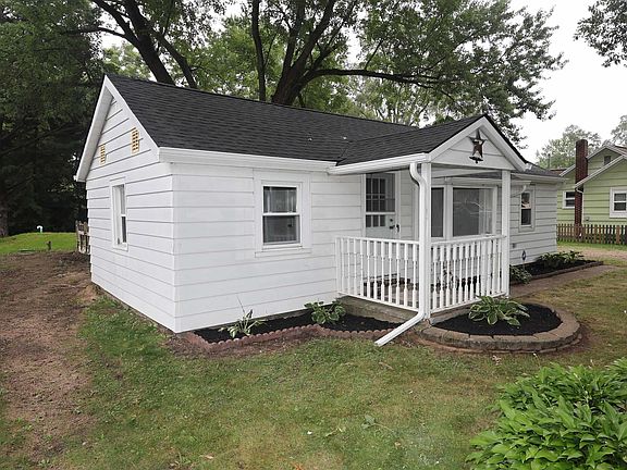 Move in ready home at a great price. Clean and fresh with new paint and flooring throughout the whole home. You will love the living room with vaulted ceilings and large window for natural light. Catch some peace and privacy in the 2 very nice sized bedrooms with large closets. House offers eat in kitchen with new gas range. Updated bathroom with new shower surround, vanity, and toilet. When our Indiana winter hits you will appreciate the 2 car detached garage for storage and to protect your cars. Nice 8x12 shed for toys and tools. After a long day you can relax and view mature trees and peaceful backyard from large wood deck on back of home. Peace of mind for many years to come with new roof, AC, water heater, and septic system. Just move in and enjoy!