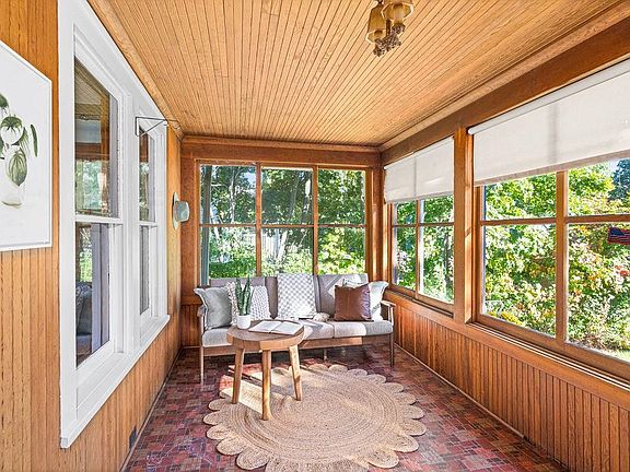 Back porchOriginal hardwood floorsTwo-stall detached garageOriginal brick fireplaceSunny front porchSpacious yardDining room