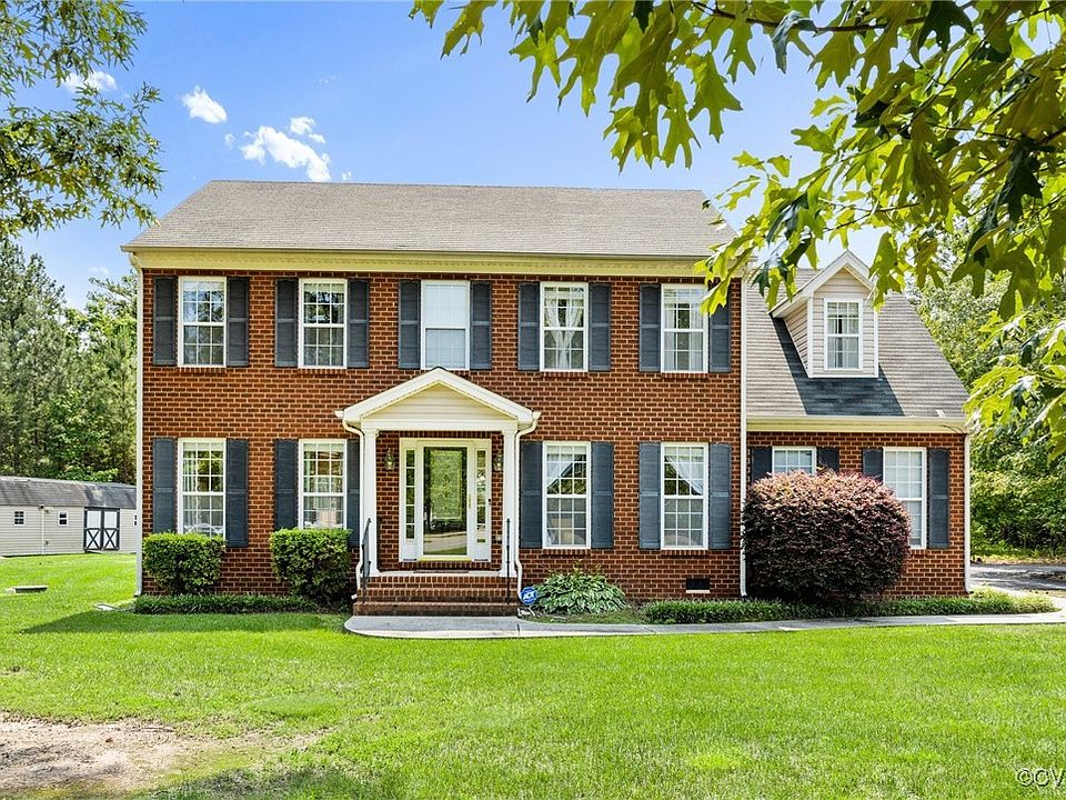 Discover this stately two-story Colonial offering 1,921 finished square feet of comfortable living space, nestled on a scenic 1.23-acre corner lot in the desirable Mansfield Woods neighborhood—where every lot is an acre or more. This charming home features a classic brick front with low-maintenance vinyl siding, and includes 4 generously sized bedrooms and 2.5 bathrooms. The front-to-back family room offers beautiful hardwood floors and provides the perfect space to relax or entertain, while the formal dining room is ideal for hosting gatherings. The bright eat-in kitchen with bay window offers both functionality and comfort for everyday living. The primary bedroom features vaulted ceilings, two oversized closets and an en suite bath. Enjoy outdoor living on the attached deck overlooking the wooded yard, and the convenience of a rear-entry garage and paved driveway.