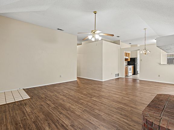 Brick fireplaceFresh paintUpdated countertopsNew wood flooringRemodeled interior