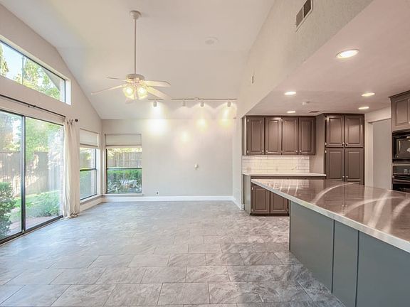 Lovely, soft, contemporary four bedroom, three bath home with open living and dining rooms and wet bar. Large kitchen with stainless steel island and new, solid surface counters. Kitchen is open to 2nd living area. Beautiful hardwood floors in living and dining areas. Primary bedroom opens to pretty back yard, patio as well. Primary bath has separate garden tub and shower. Show and lease. 2025-12-08