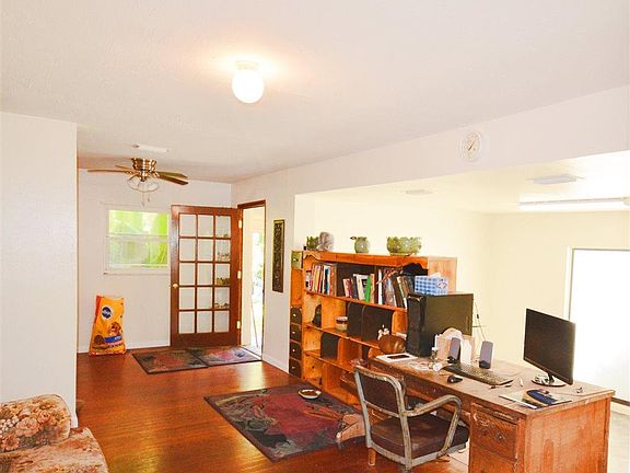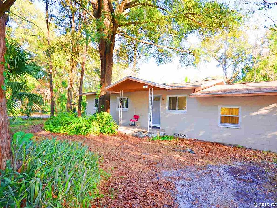 The Price is Right for this 3 bedroom, 1 bathroom block home just off of SW Archer Rd. Hardwood floors throughout add character inside this unique house that also features a bonus family room/den with an over-sized sliding door that provides privacy and filtered natural light. Outside, mature tangerine, lemon, and banana trees provide home-grown tasty enjoyment while a superior barn-style steel shed on a slab gives plenty of space to store what you want. Recent upgrades include roof, central a/c, and breaker box. Conveniently located near the burgeoning Celebration Pointe and Butler Plaza. Straight shot to the University of Florida, and the Shands and VA hospitals -- On direct bus routes. Located in great school district, just minutes from Wiles Elementary and Kanapaha Middle School.