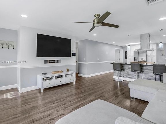 Completely remodeled 3/2 single-family home in the heart of Cooper City w/ NO HOA. This stunning residence features luxury vinyl flooring throughout, impact windows, recessed lighting, & modern zebra blinds for your convenience. The open-concept kitchen boasts sleek stainless-steel appliances, white shaker cabinets, quartz counters, & soft-close drawers. Enjoy a spacious layout w/ two living areas, one perfect for a 4th bedroom, home office, or game room. The master suite offers two walk-in closets & a resort-style bath w/ elegant finishes. Abundant natural light flows through every room. Spacious laundry room in the home for your convenience. The property is fully enclosed with PVC fence for privacy. Full 1 car garage. A covered outdoor patio with ceiling fans, perfect for entertaining.