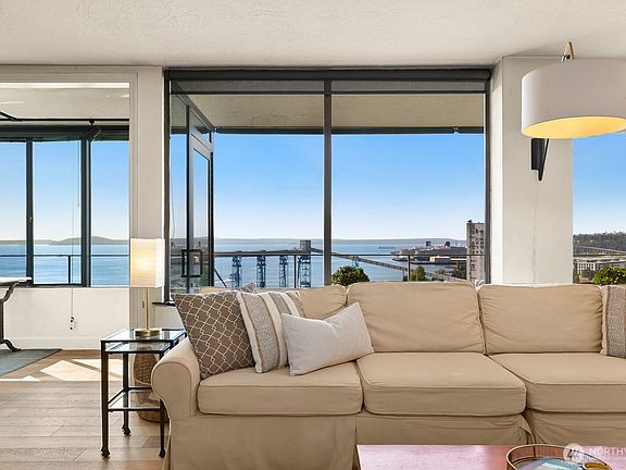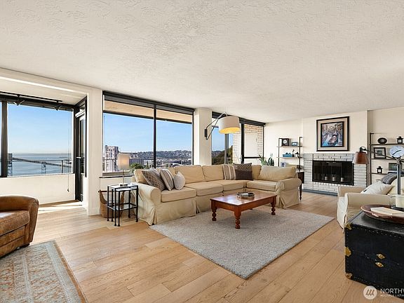 Connect to the soul of Seattle in this sophisticated 10th floor, pied-a-terre at Harbor House – a fantastic concrete & steel building on the south slope of QA. Enjoy panoramic views - sunsets over the Olympics, sparkling Elliott Bay w/ferries, sailboats & all manner of marine craft. Connect to Community, Culture, Fandom & Nature – moments to local restaurants & shops, the Opera, PNB & Seattle Center, multiple sports venues, local parks & the Waterfront. Loft-like & airy, a recent reno opened the 2nd BR to create a fabulous great room feel. Custom Murphy Bed/library/media center provides guest & entertainment space. Primary bedroom w/ ensuite bath. Front row, view den makes work from home a delight. 2 parking spaces, A/C, WalkScore 84.