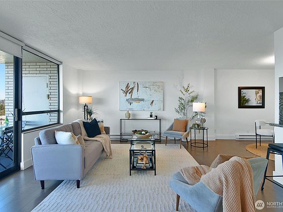 Perched above Elliott Bay with sweeping water & Olympic Mountain panoramas, this bright, refined Uptown condo captures quintessential Seattle living. Enjoy morning coffee on the expansive patio while watching ferries or spotting whales. There are two storage units on the private patio, as well as a garage locker near your designated secure parking. Relax in complete comfort with secure building entry, air conditioning & a generous primary suite offering a wall-to-wall closet and private deck entry, facilitating a restful retreat with breathtaking PNW views. Steps to Mercer Street’s shops in Queen Anne and an easy stroll to the Space Needle, this residence pairs breathtaking vistas with unmatched convenience for an idyllic Seattle lifestyle.