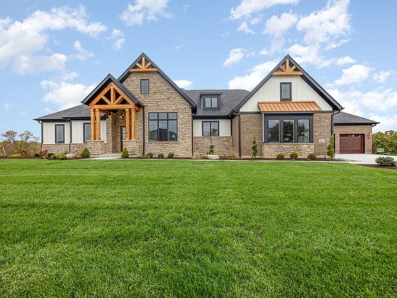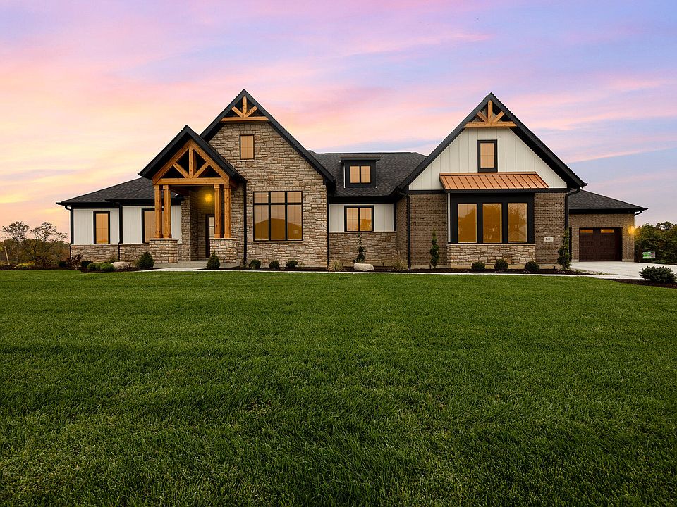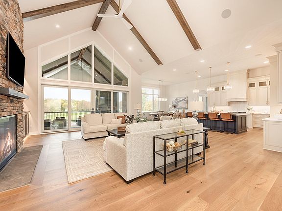 NEW 2025 Home Show Showcase Home! Designed around the power of five: 5 oversized garage spaces, 5 spacious bedrooms, 5 full baths (plus a half). Set on more than an acre with show-stopping views of Triple Crown golf course hole #4 and the lake. Enjoy a covered deck with outdoor fireplace, perfect for year-round living. Inside, discover soaring ceilings, Bosch appliances, a spa-inspired primary suite, a grilling deck, and a huge walk-through pantry. The lower level is built for entertaining with a stunning bar area and ample space for gatherings. Located just steps from the new Publix and Triple Crown's premier amenities. This home blends luxury, lifestyle, and location in one exceptional package.