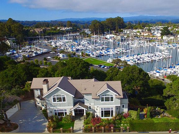 Coveted Santa Cruz Yacht Harbor location just steps to the beach, harbor and popular waterfront restaurants! Enjoy the lifestyle & amazing views from this Contemporary/Cape Cod luxury beach home overlooking the harbor. Built in 2005, this stunning custom home boasts of high-end finishes throughout & offers 4 bedrooms, plus office. Amazing master suite w/harbor & ocean views, private deck, spacious bath w/ lg tub, designer stone tiled shower & double vanity. Gourmet kitchen w/ granite counters, stainless appliances and slate flooring open to dining and living rooms with soaring ceilings and large picture windows looking out to the harbor. Watch the boats while entertaining friends and family on the large private back patio with outdoor kitchen, surrounded by beautiful meandering gardens! Special features include: Radiant heat, copper gutters, electric awnings on back patio, separate 2 car garage, 8700+/- sq.ft. lot, private fenced yard with mature landscaping in a park like setting.