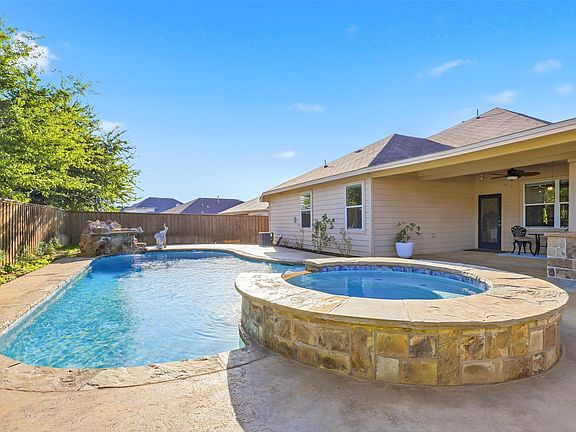 Hot tubOutdoor kitchenFully fenced yardBackyard made for funCovered patioJump rockDual side access