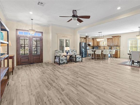- Bathtub, Ceiling Fan(s), Granite Counters, High Ceilings, Kitchen Island, Kitchen Open to Family Room, Open Floorplan, Shower, Shower in Tub, Eating Area In Dining Room