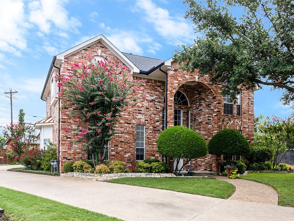 Nestled in a serene cul-de-sa, this distinguished Brick Home by Paul Regan Custom Builder offers a unique blend of comfort, luxury, and privacy. The interior of the home exudes warmth with its inviting color palette. The downstairs area is designed for both functionality and style, starting with the gourmet kitchen that is a chef’s dream. It features luxurious amenities such as a wine cooler, a convenient coffee bar, a farmhouse sink & granite countertops plus gas range & slate floors adds to the culinary experience. Living area is anchored by a beautifully decorated fireplace, hardwood flooring plus lots of windows creating elegance. Upstairs, the bedrooms feature extra-large walk-in closets. The private suite is a sanctuary in itself, featuring a separate shower, garden tub, dual sinks plus cozy sitting area ideal for relaxation after a long day. Back yard greets you with allure of a custom swimming pool, sprawling lawn, shed & decorative fencing that invites outdoor relaxation.