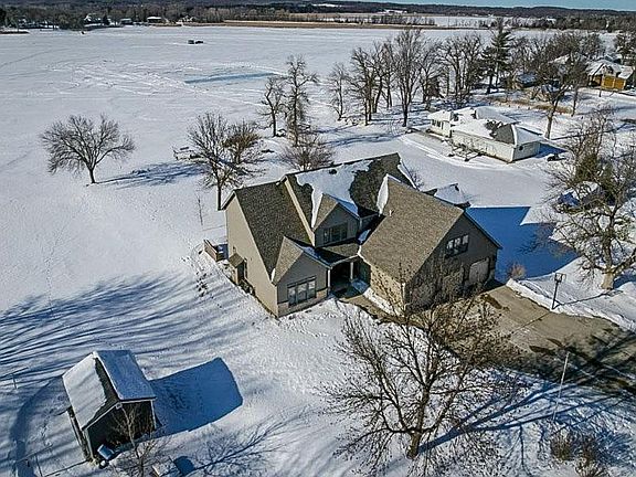 Absolutely stunning two-story patio home on Popular Middle Spunk Lake with gorgeous lake views on a level lot featuring the most ideal sandy beach for swimming and entertaining. Enjoy the abundance of natural light throughout the open living spaces and take in the spectacular lake views from nearly every room. The home boasts a variety of beautiful upgrades including durable vinyl flooring, 6-panel doors, gas fireplace, French doors, vaulted ceilings, steel siding, new shingles, furnace and boiler for in-floor heating. The spacious kitchen features a center island, tasteful backsplash, trendy white appliances, granite counter-tops, and versatile flex room that could serve as a breakfast nook, dining area, or entertaining space to suit your lifestyle. Large entryway off garage with huge walk-in closet and an extra bonus room — perfect for a workshop, gym, home bar, butler’s pantry, or anything you can imagine. The main level bedroom could also serve as an office or bonus room. Upstairs, you'll find four large bedrooms, office nook in loft with gorgeous lake views, laundry room with large storage area, and a primary suite that includes a luxurious jetted tub, double sinks, and a walk-in closet. Plenty of room for all your toys and hobbies in the heated 3 stall garage plus a work shop all featuring the comforts of in-floor heat. The home is set on a beautifully manicured lawn, complete with a dog door, in-ground fencing, and sprinkler system. Sip coffee on the front porch or relax on the West facing back patio with pergola while entertaining and enjoying the breathtaking sunsets overlooking the lake. Take your guests on a Pontoon ride to the nearby historic Fishers Tavern and PJ’s Restaurant for amazing food, cocktails and live music. Conveniently located off I-94 in Avon, this home offers the perfect blend of peaceful lakefront living and easy access to local amenities with close proximity to Wobegon Trail. Don’t miss out on the chance to make this stunning property your new home!