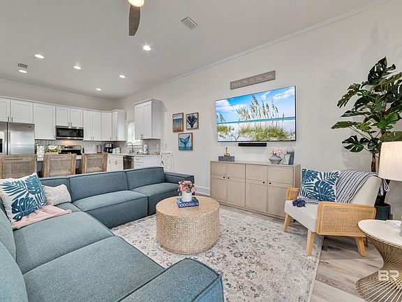 Welcome to SOUTH HAMPTON – Your Gulf Shores Dream Home & Investment Opportunity!Perfectly positioned in the heart of Gulf Shores, this 4-bedroom, 4-bath GOLD-FORTIFIED coastal cottage blends luxury living, modern design, and unbeatable convenience. Just a 3-minute walk to the sugar-white sands and emerald-green waters, SOUTH HAMPTON is fully furnished, turn-key, and rent-ready—great for savvy investors or families seeking the ultimate beach retreat.Step inside and experience the bright, open-concept floor plan designed for both comfort and style. The chef-inspired kitchen features quartz countertops, a herringbone backsplash, and a large island—well suited for entertaining or sharing meals with loved ones. The spacious living area is elevated by soaring ceilings, crown molding, and coastal-inspired finishes. With two primary suites (one on the main floor and one upstairs with private deck access), plus two additional en-suite bedrooms, every guest enjoys privacy and luxury.Outdoors, relax on your expansive 22’ x 10’ decks on both levels, soak up the sun by the community pool, or host gatherings with ease. Additional highlights include deep parking for up to 4 vehicles and an 11’ x 10’ storage room for all your beach gear. Whether used as a vacation rental powerhouse or your own Gulf Coast haven, SOUTH HAMPTON is built for easy living and unforgettable coastal memories.Nearby Attractions Include:Gulf Shores Beach – 2 min walkThe Hangout – 0.8 milesGulf State Park – 1.3 milesGulf State Park Pier – 0.7 milesCoastal Segway Adventures – 0.7 milesWaterville USA – 1.5 milesAlabama Gulf Coast Zoo – 6 milesBig Beach Brewing Company – 3.7 milesSportsplex – 6.8 milesAquatic Center – 2.7 milesBon Secour National Wildlife Refuge – 10.6 milesSailaway Charters Eco-Tours – 10 milesDolphins Down Under – 8.6 milesWelcome Center – 4 miles Buyer to verify all information during due diligence.