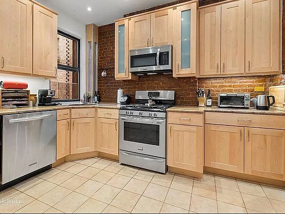 Live in this beautiful spacious and south-facing 1BR apartment in the Upper Eastside. The huge charming brick-walled kitchen is equipped with modern appliances, hardwood floors, windows in every room. Its lofty 9ft ceilings are outfitted with recessed lighting for desired ambience and ceiling fans for air circulation. The windowed bathroom has a shower stall.