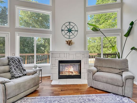 ACCEPTING OFFERS!! Priced for quick sale! Escape to 2 private acres of beauty and function! This 3-bedroom and 3-bath home with 2 bonus rooms offers the perfect blend of luxury and versatility-ideal for a home office, gym, or guest space. Vaulted ceilings, rich Acacia wood floors, and an open-concept layout create a warm, inviting feel. The chef's kitchen boasts granite countertops, high-end appliances, and a walk in pantry. Enjoy partial Olympic Mountain and Hood Canal views from your upper deck, or unwind on the covered patio in the fully fenced backyard. A heated 36x36 shop and attached 2 car garage, space for hobbies or toys. Wired for electric gate, full house fire suppression system, new roof in 2019. Well kept home has it all!