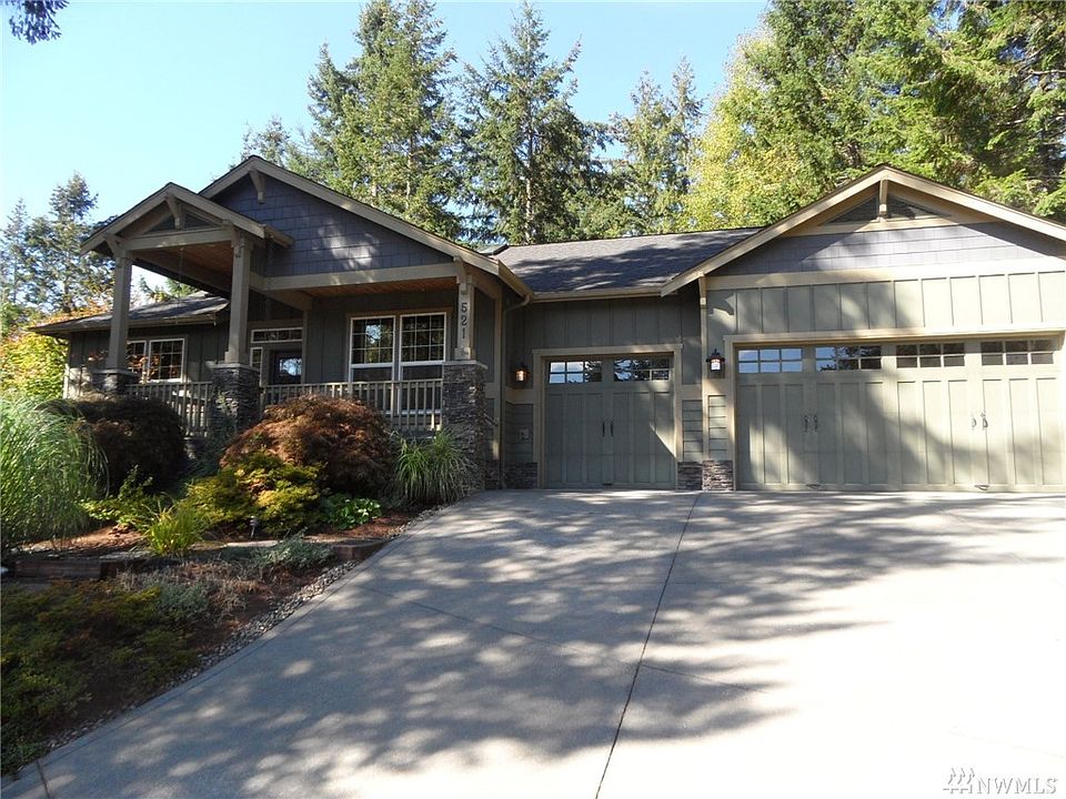 QUALITY custom home in Lakeland Village. This 3 bedroom,2 bath with a den & open concept living area is nicely appointed throughout. Cherry wood cabinets & trim package, hardwood floors,stainless steel appliances, built in speakers inside & out, 3 car garage, Trex deck, & much more. The back deck with view of golf course is private. Additionally are two storage sheds both custom matching the home. Enjoy all the amenities including, golf,tennis, lake access, & services. Only 30 min. to the ferry!