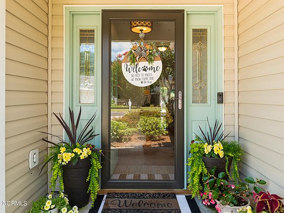 Centrally located in an established community, 521 Foxwood Lane offers a charming and tranquil setting for your next chapter. The covered front entryway and inviting foyer welcome you to a thoughtfully designed layout. The floor plan manages to achieve a perfect blend of open concept living and defined spaces. Natural light flows through the grand arched window of the dining room as well as the lovely front door flanked by sidelights. This three bedroom/two bath home lives large with vaulted ceilings in the dining room, living room, and primary bedroom. The kitchen features stainless steel appliances, tile backsplash, and a nearby pantry with ample storage. The whitewashed natural gas fireplace serves as a gorgeous focal point in the living room and will keep you warm during the short southern winter. French doors lead to the peaceful sunroom overlooking the vibrant colors of the fenced backyard where tall trees reach out to meet the Carolina blue sky. The primary suite will be your sanctuary, as it is tucked away in the back of the home with direct access to the sunroom. It is evident that the owner has meticulously cared for this home and poured her heart into the outdoor areas. The extensive multi-level deck offers you another space from which to admire the mature landscaping and enjoy time with friends and family. An irrigation system will help you keep everything green and growing. Additional features include hardwood floors in the common areas, a 2-car garage, newer roof (2019), and low traffic thanks to the dead-end street. There is so much to love! Although the location is convenient to area beaches, historic downtown Wilmington, and plenty of shopping and dining options, there are no city taxes. Come see what makes this home so special.