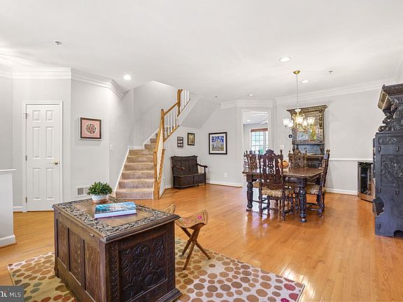 Beautifully maintained and ideally located, this 3 bedroom, 3.5 bathroom townhouse sits in the highly sought-after Fallsgrove community. With exceptional curb appeal, it welcomes you with a charming brick walkway and inviting front porch with new railings (May 2025). Inside, you'll find a sun-drenched, open-concept living and dining area featuring gleaming hardwood floors throughout. The gourmet kitchen is a chef’s dream, complete with stainless steel appliances ( all replaced in Sept. 2021), granite countertops, a large center island, and a spacious breakfast nook. French doors open to a private courtyard with a grill, room for seating and privacy fence rebuilt 2022—perfect for entertaining. The kitchen, with direct access to the attached 2-car garage, flows seamlessly into the cozy family room. A stylish powder room completes the main floor. Upstairs, the expansive primary suite offers a true retreat, boasting built-in shelving, generous walk-in closets, and a luxurious en suite bath with jetted tub, walk-in shower, and dual vanity. Two additional bedrooms, a full hall bath, and a conveniently located laundry area with brand new washer and dryer (August 2025) round out the second floor. The third level offers a versatile fourth bedroom or flex space—ideal for a home office, guest suite, or recreation room—along with a full bathroom and large storage closet. Additional improvements include new smart thermostats (Sept. 2024), new energy efficient/water conserving shower heads (Sept. 2024), rebuilt 3rd floor window sills, new motor in bonus garage fridge, and A/C last served May 2025. Enjoy unbeatable convenience with restaurants, shops, a grocery store, banks, the community pool, fitness center, and Thomas Farm Community Center just steps away. Commuters will love easy access to I-270, the ICC, and the Shady Grove Metro. A must see!!