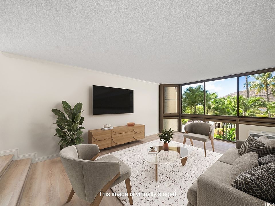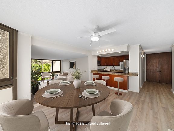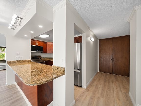 Upgraded 2nd floor corner unit with spacious interiors and two parking stalls. Tree top views, overlooking the tropical garden with soothing sounds water nearby. Enjoy the property's two impressive resort-style amenity pools, multiple jacuzzi, sauna, gym, BBQ areas, and even a putting green. Wonderful gathering place for residents and their guests. Conveniently located in the Hawaii Kai neighborhood, close to shopping, dining and entertainment. No dogs are allowed at the Mauna Luan. Other animals are generally accepted as household pets, in reasonable number.