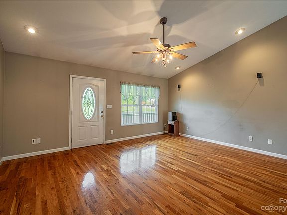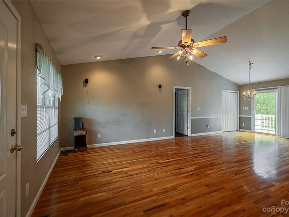 Spacious 3-bedroom/3-bathroom one-level home with a full basement in a great location, close to I-40 and Downtown Morganton! On the main level, you can enjoy the open concept and split-bedroom floor plan. Upon entry, take note of the large and open living room/dining area under a vaulted ceiling with real hardwood floors. This home offers a spacious primary bedroom with a private full bath and a walk-in closet. On the other side of the home, there are two ample-sized bedrooms with good closet space. The full basement is partially finished, offering plenty of space for a family room and a 4th bedroom if needed, along with a 3rd full bath. You'll find tons of storage and workspace in the oversized double garage. Outside, enjoy the upper Trex deck, flat backyard, and lower poured patio area. HVAC replaced 2021-Trane system. Detached metal carport tall enough for most RVS.
