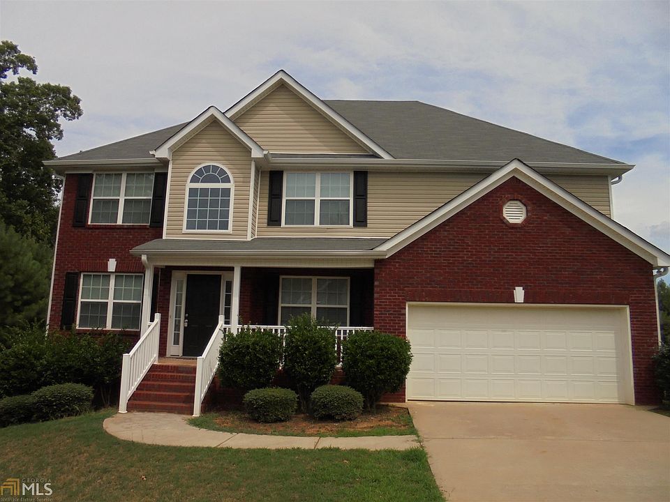 LOCKBOX on FRONT DOOR, full basement unfinished, and stubbed for bathroom, formal dining room, formal living room, family room with fireplace, owners suite with a sitting area,plus loft area upstairs, fourth bedroom on main floor,High trey, vaulted and 2 story ceilings, garden tub, walk in closets, ceiling fans, swim and tennis community. Brick accents, wooded back lot, Buyer must have a approval letter from lender, with offer. Qualifies for 100% Financing.