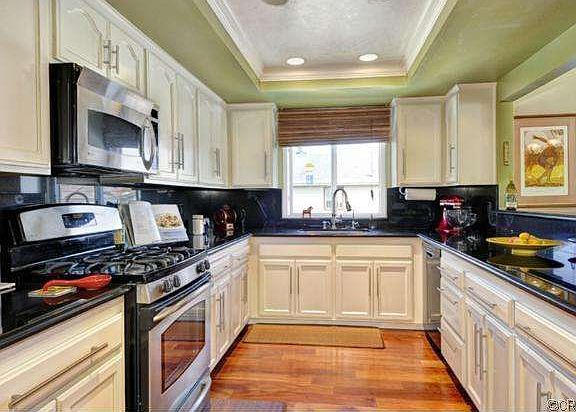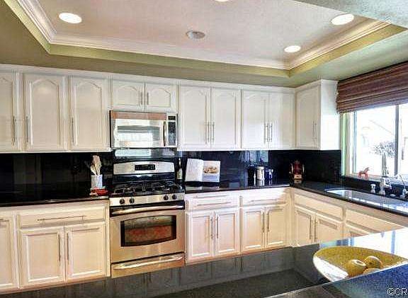 Beautiful and spacious 3 bedroom / 2.5 bath detached town home. Gourmet cook's kitchen with stainless appliances, recessed lighting, breakfast bar and granite counter tops that opens to the living area. The entire top level has gorgeous mahogany floors. Great room with vaulted ceilings, bay window, stone stacked fireplace and a deck off the living room to cookout or enjoy the evening breeze. Spacious master suite with walk-in closet and master bath with marble counters and separate tub and shower . Two nice size bedrooms with a shared updated bath. New A/C. Private backyard. Back unit on a quiet tree lined street. Come live where you can walk to award winning Redondo Beach schools and more.