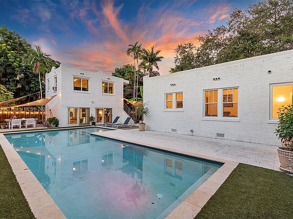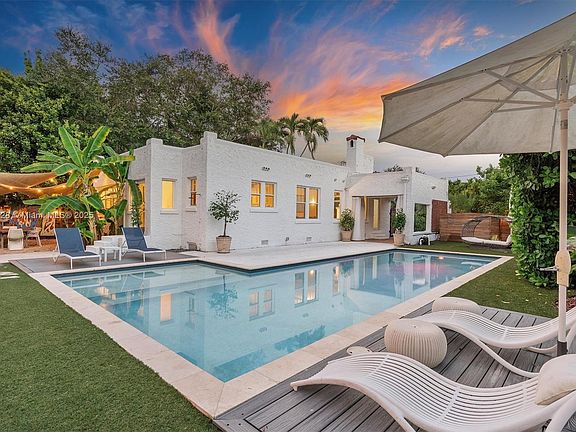 Welcome to Casa Del Sol, a charming Mediterranean Revival home in Biscayne Park. The main house features 2 bedrooms, 1 bath, a cozy living room with a working fireplace, arched windows, and timeless architectural details. A versatile two-story guest house offers an upstairs apartment and a downstairs office/studio—ideal for guests, work, or creative space. Step outside to a large pool and lush yard perfect for entertaining or relaxing under the palms. With its barrel-tile roof, stucco exterior, and classic Spanish-inspired design, this residence blends historic charm with modern comfort in one of Miami’s most desirable neighborhoods.