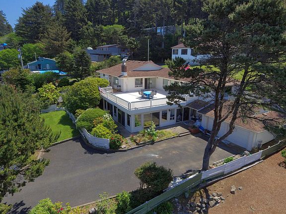 RETREAT AT THE BEACH! Amazing one-of-a-kind home in NW Newport. Top quality finishes throughout! Use gourmet kitchen to entertain all your friends on the 1,000+ sq ft ocean view deck. Large master suite includes generous walk-in closet, jetted tub, washer/dryer, sliders to deck & ocean views. Lower level provides separate living quarters with kitchen, bedroom, bath and large family room with fireplace and french doors to cedar lined pool room featuring practically maintenance free 16' x 36' heated saltwater swimming pool! Beautifully landscaped grounds with 2 separate driveways & garages. Unique home with possibilities for extended family, dual living, or corporate retreat (buyer to verify with city.)
