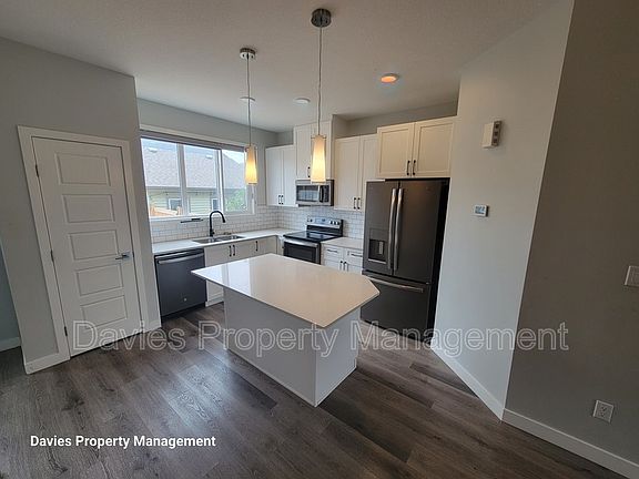 Welcome to 521 Paterson Way SW, a beautifully maintained half-duplex located in the family-friendly neighborhood of Paisley. This spacious and modern home features an open-concept main floor with a bright and functional kitchen, complete with stainless steel appliances, ample cabinetry, and a large island perfect for entertaining. The living and dining areas offer plenty of natural light and stylish finishes throughout. Upstairs, you'll find three generously sized bedrooms, including a primary suite with a walk-in closet and private ensuite. An additional full bathroom and convenient upstairs laundry complete the upper level. Enjoy the outdoors with a private, fenced backyard and the convenience of a double detached garage. Street parking is also available in front of the home. Located close to parks, trails, schools, and shopping, this home offers comfort and convenience in a vibrant southwest community. Monthly rent: $2,300 Utilities not included Cat Friendly