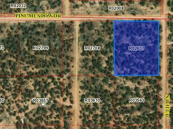 Property is located right on the main Pine Meadows Ranch Road at the very back of the subdivision. Power is across the street. POA dues are $15 per acre per year. Partially wooded with areas to camp or build.