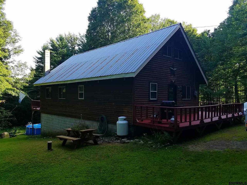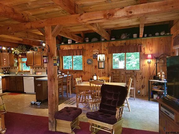 This incredible post & beam custom chalet will make you feel like you are on vacation every day! Wrap around deck, plus deck off upstairs bedroom, & walk-out (double door) basement into your private retreat. Acres of trails, ponds, snowmobile/4-wheel trails to nearby lakes. Inexpensive to heat, new carpets, stove, high-end ember gas stove, new oil furnace, large updated bathroom, generator hook-up, 2nd well, beautiful stone walls, and extra parking maintained by the Town.