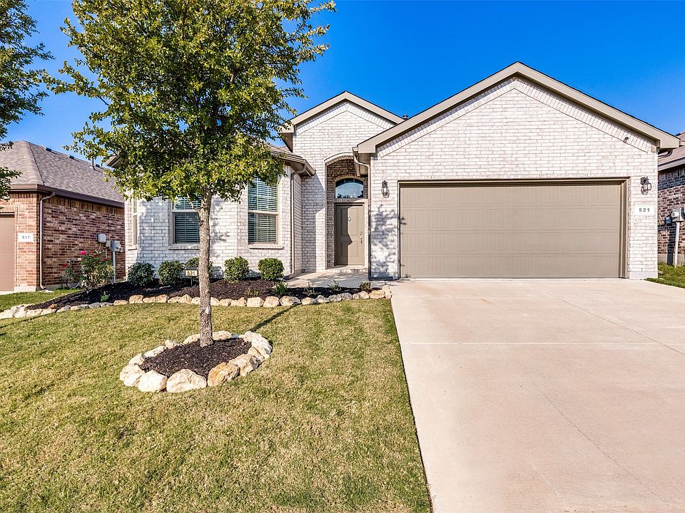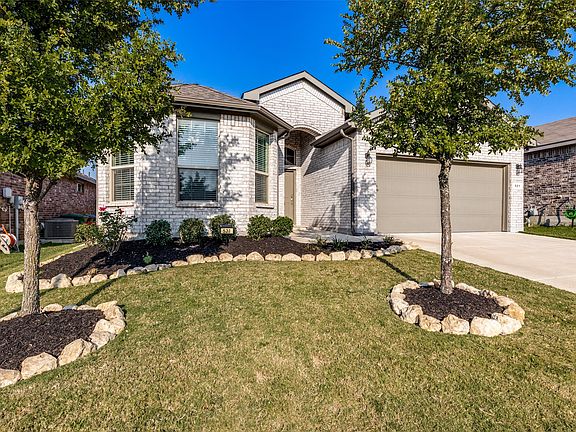 Welcome to this beautifully designed single-story home located in the highly sought-after Northwest ISD. MOVE IN READY! Featuring four spacious bedrooms and two full bathrooms, this residence blends modern comfort with timeless style. An open-concept layout and wood-look tile flooring throughout create a seamless flow from room to room, offering both durability and sophistication. The gourmet kitchen boasts sleek cabinetry, ample counter space, refrigerator included, and overlooks the inviting living area — perfect for entertaining or relaxing with family. A tankless water heater ensures endless hot water and added energy efficiency. The primary suite provides a serene retreat with a private bath, while three additional bedrooms offer flexibility for guests, a home office, or hobbies. Outside, enjoy a covered patio and easy-care yard. CLASS 3 ROOF REPLACED IN MARCH 2025. Just steps away from the community pool. This prime location puts you close to popular shopping, dining, and entertainment options, combining convenience with a welcoming neighborhood atmosphere. Don’t miss the chance to make this modern Northwest ISD home yours — schedule your showing today! MUST SEE IN PERSON.