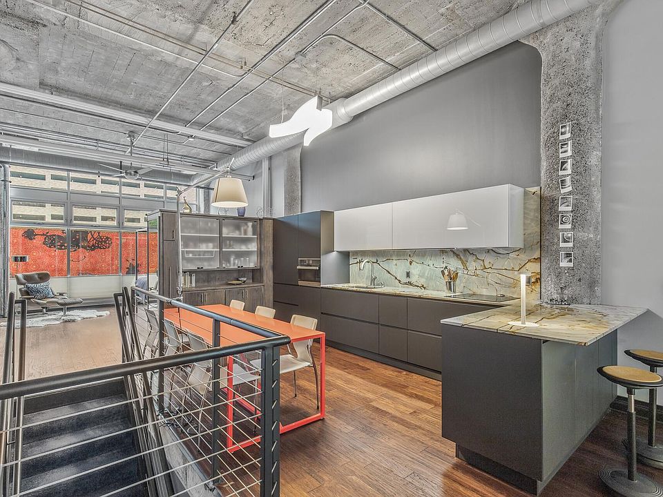 Looking for a “Wow!” moment? This one of a kind 2-story condo in the historic Sexton building features over 1800 sqft of high-end modern industrial loft space and the largest of only 4 private walled patios in the building. Stepping in from the courtyard, you’ll find soaring 13.5ft ceilings, engineered hardwood floors, and a kitchen that steals the show: custom cabinetry with drawers galore, integrated fridge and dishwasher, high-end Miele combi-steam oven, Fisher & Paykel induction cooktop, and stunning Brazilian natural stone countertop and backsplash! The updates continue throughout with a fully renovated bathroom, tons of built-in storage, and in-floor heating downstairs that keeps the huge lower level cozy all winter. The secure, pet-friendly building has a rooftop deck for grilling in the summer. Come enjoy the best of downtown living!