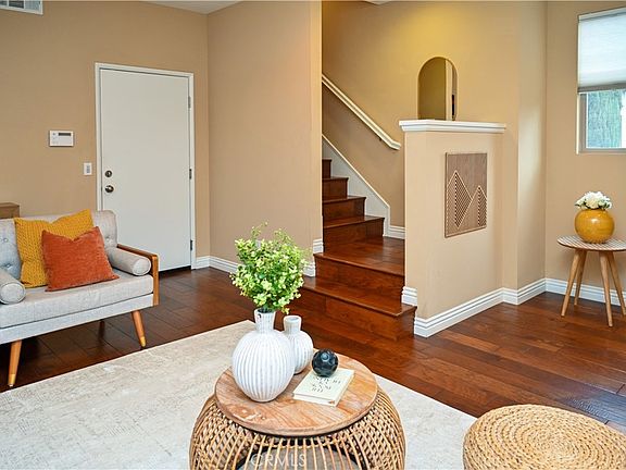 Welcome to this beautiful contemporary home, just minutes from Downtown Brea! Featuring a bright, open floor plan, the spacious lower-level living room is perfect for both relaxation and entertaining. The second floor offers a well-appointed kitchen with an induction range, smooth-top cooktop, energy-efficient stainless steel appliances, stylish countertops, and ample cabinet space. The kitchen flows into the family room, making it ideal for gatherings, while the large living room opens to a private balcony. Also on the second level is a generous bedroom and a full bath. The third floor is home to the master suite with a walk-in closet and a luxurious bath featuring a dual-sink vanity and a large glass-enclosed walk-in shower. Another spacious bedroom upstairs includes its own private bath. Energy-efficient features include solar power, low-emission windows, and energy-saving appliances, all designed to lower utility costs. The third level also offers an indoor laundry area. The two-car garage is pre-wired for a Tesla charger, with direct access to the home. HOA dues cover water, trash, pest control, and exterior maintenance. No Mello Roos! Enjoy easy access to City Hall Park and vibrant Downtown Brea, with its shopping, dining, and entertainment. This home is also within the award-winning Brea Olinda School District.