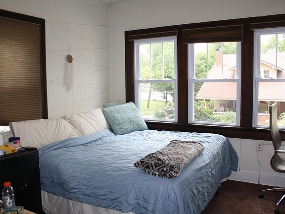 This house is a showstopper. Located on top of a hill with a gorgeous wrap around front porch you get a gorgeous view of downtown from the porch swing. Inside the house you will find a remodeled custom kitchen with white amish cabinetry, a fireplace, newly remodeled bathroom, large rooms with vaulted ceilings, and plenty of off street parking. Did we mention that you are only 2 blocks away from campus? Also included are W/D, central air, lawn care, snow removal, and 24 hour maintenance.